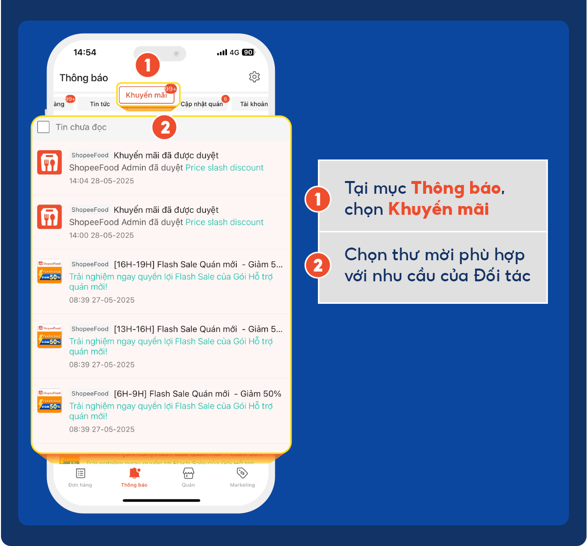 2.1. Đăng ký tại mục Thông báo trên Ứng dụng Shopee Partner