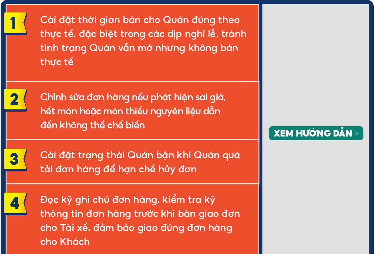 Để đủ điều kiện tham gia khuyến mãi, quán cần cải thiện các chỉ số vận hành. Dưới đây là một số hướng dẫn quán có thể tham khảo.