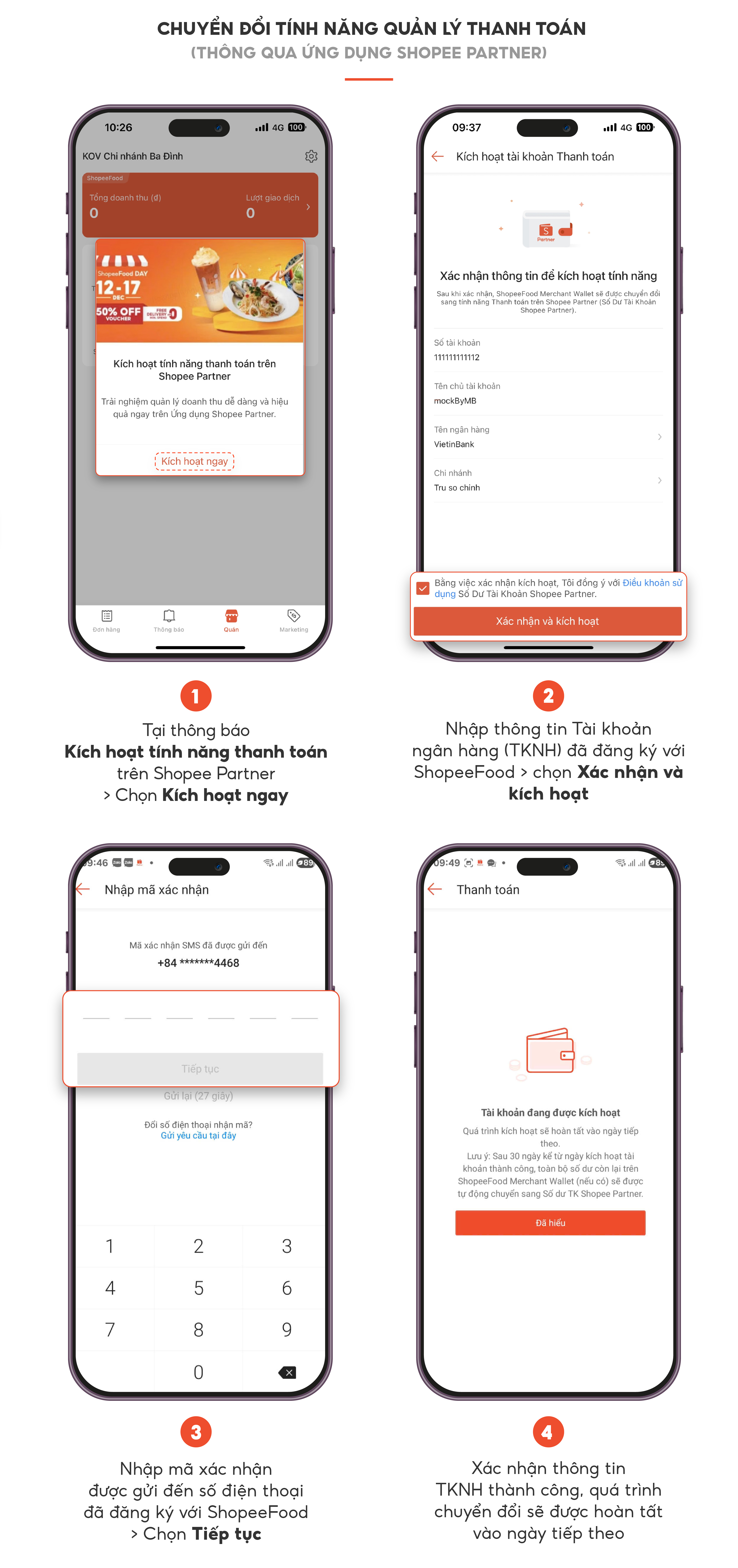 - Các quán sử dụng chung tài khoản ShopeeFood Merchant Wallet sẽ được xác nhận cùng lúc
