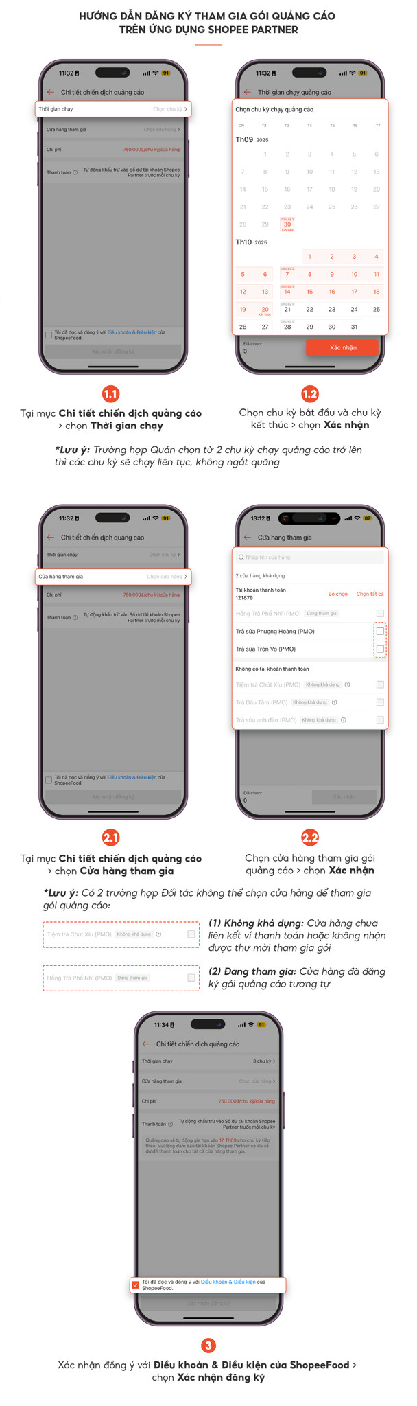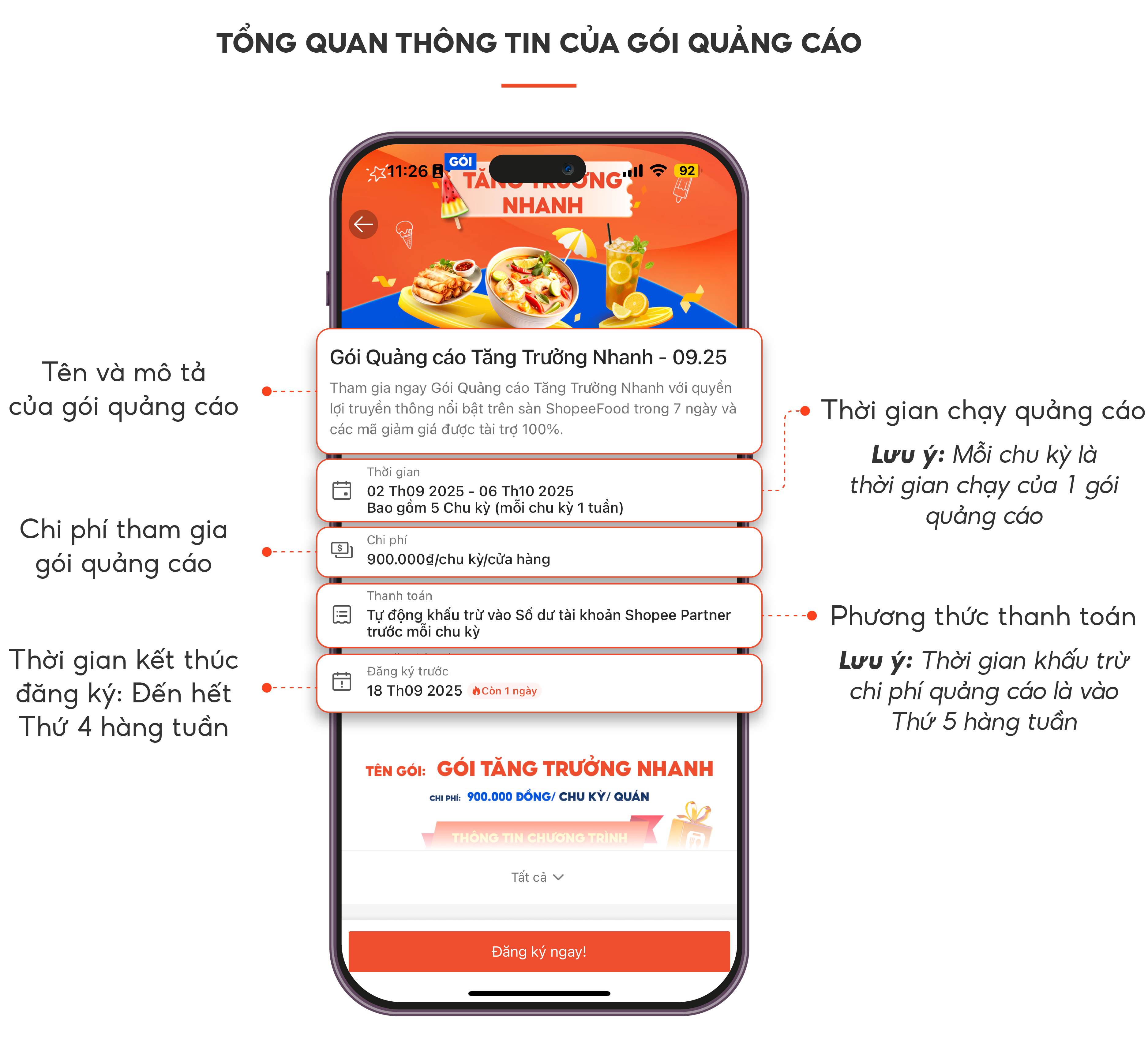 Đối tác đọc kỹ các thông tin của gói quảng cáo để đăng ký chương trình phù hợp với nhu cầu của Quán.