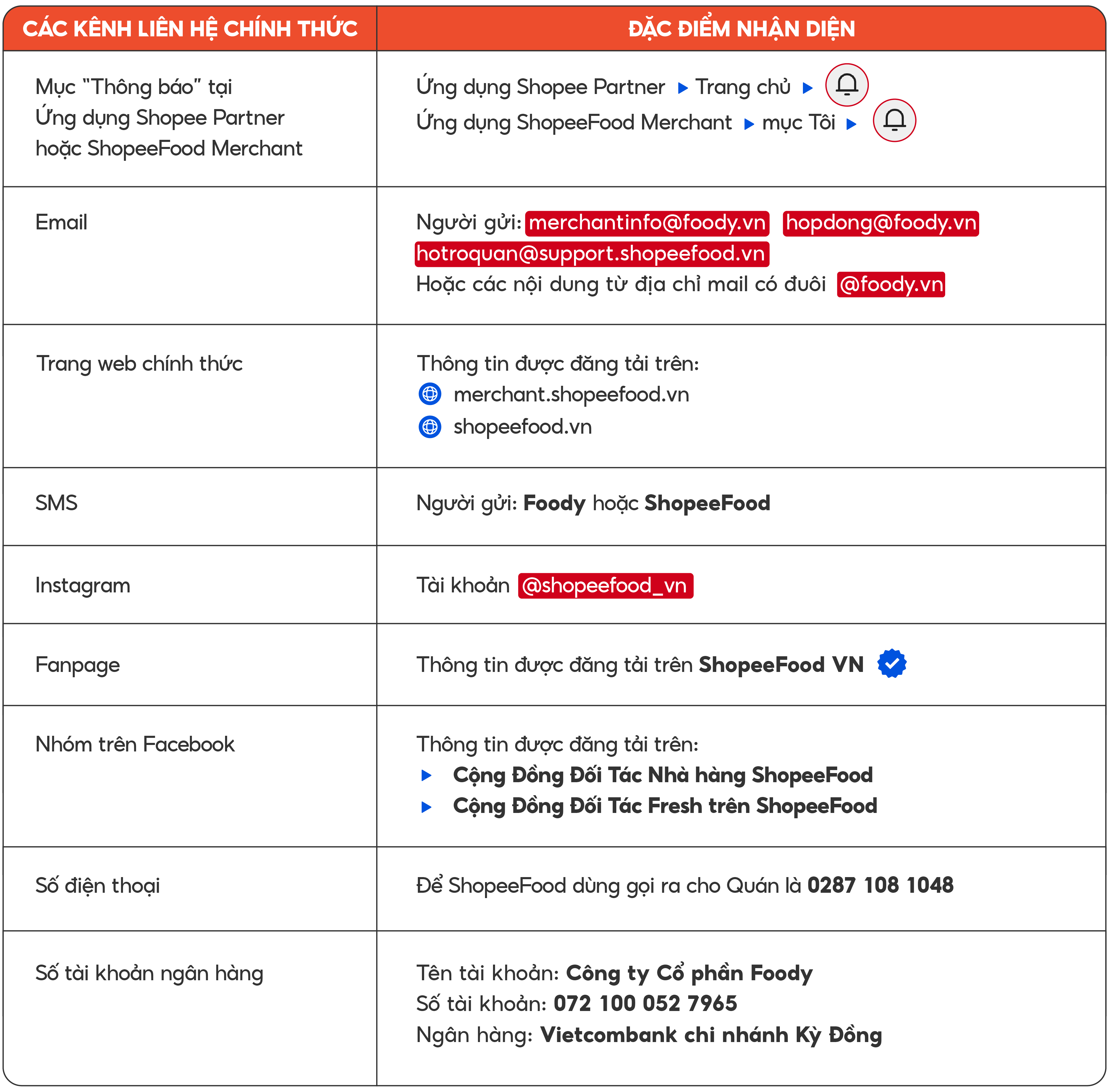 Trước các yêu cầu cung cấp thông tin cá nhân và tài khoản quản lý quán, Đối tác vui lòng cẩn trọng và kiểm tra kỹ lưỡng trước khi thực hiện bất kỳ thao tác nào để đảm bảo quyền lợi cho chính mình.