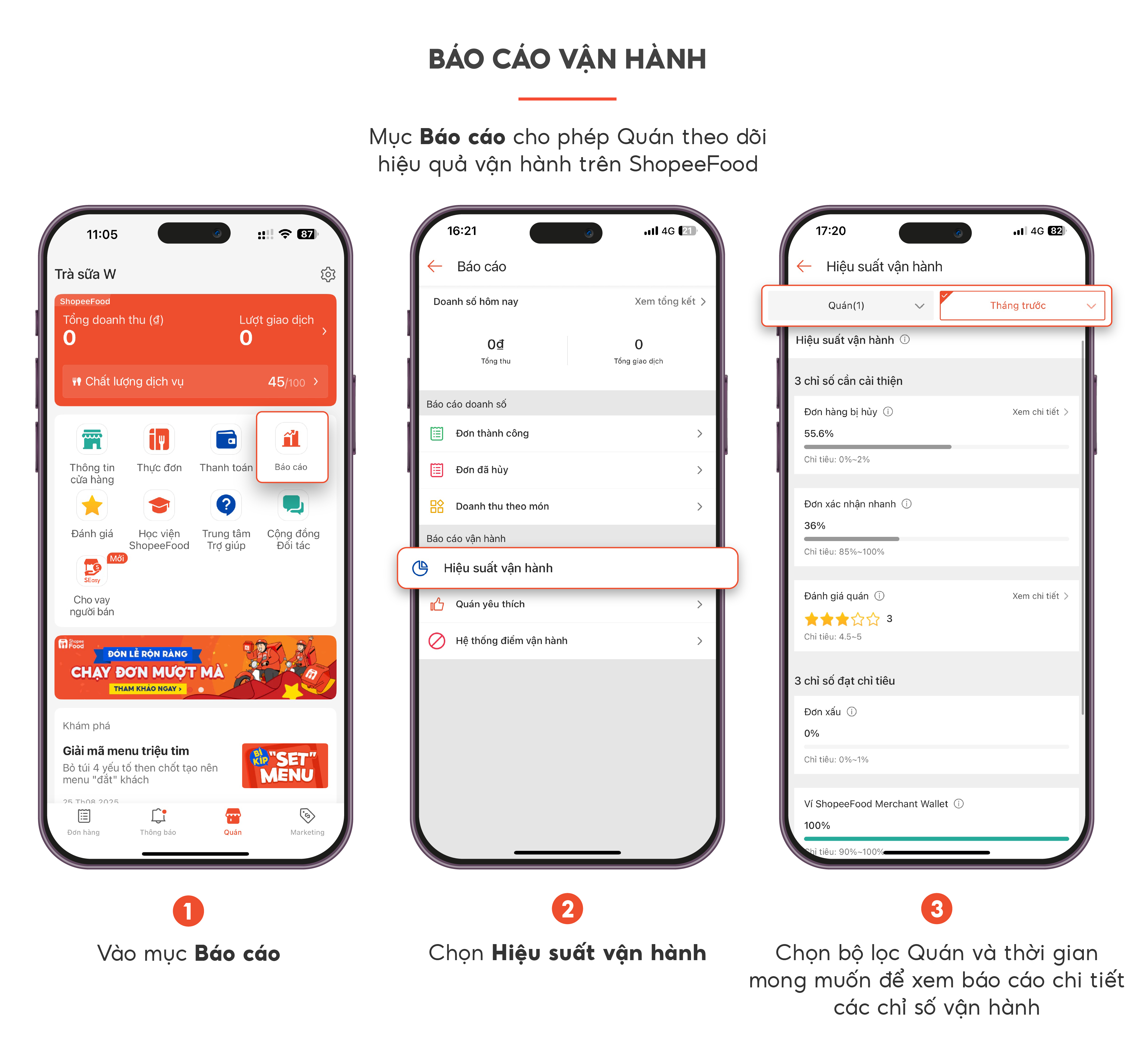 Thường xuyên theo dõi báo cáo vận hành giúp Quán cải thiện các chỉ số vận hành chưa hiệu quả, hướng tới những mục tiêu chưa đạt được và duy trì danh hiệu Quán Yêu Thích trên ShopeeFood.
