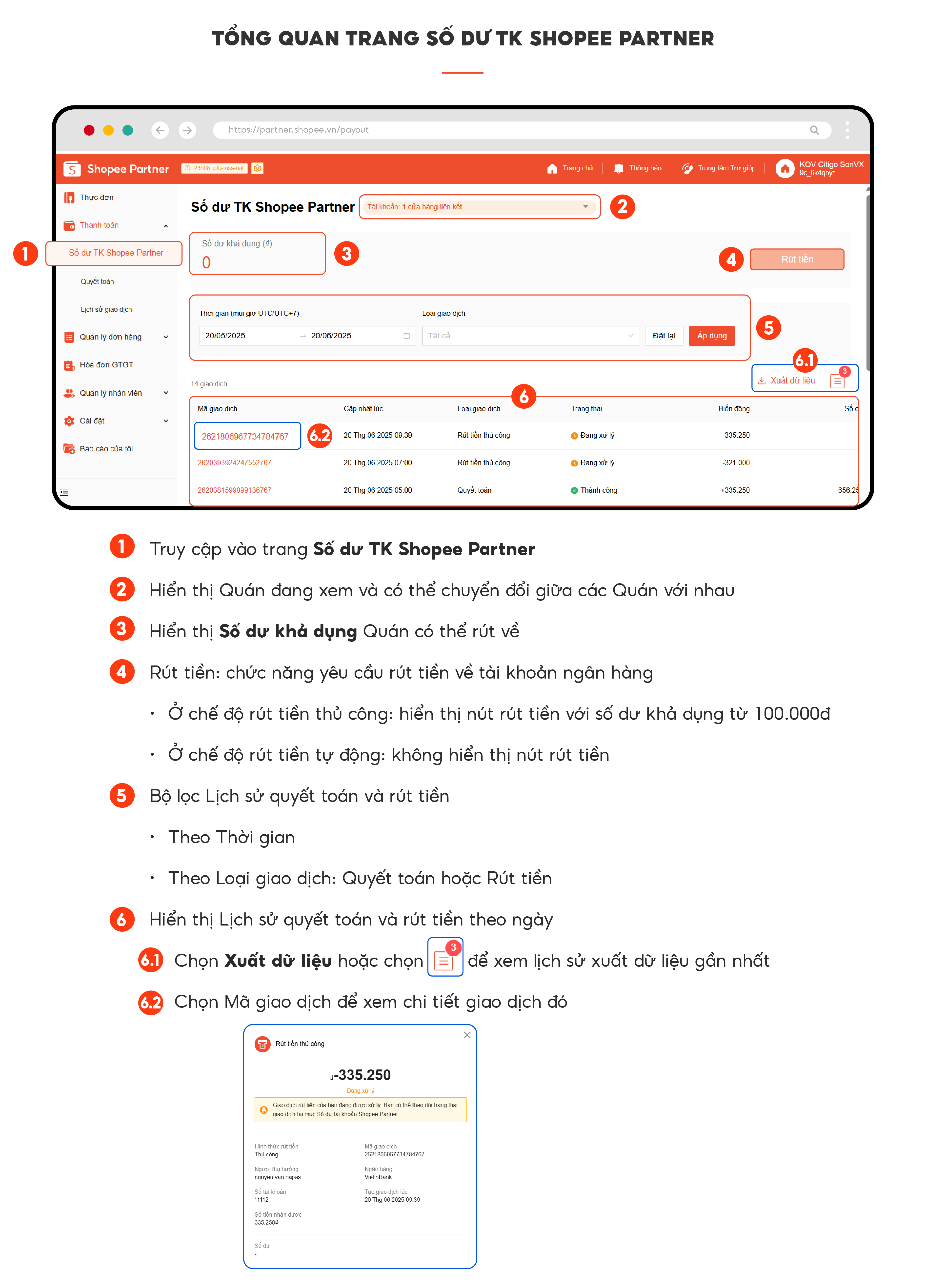 1. Trang Số dư TK Shopee Partner